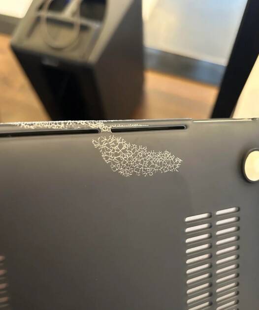 Это явно реакция пластика на какое-то вещество, например, санитайзера или другой химии