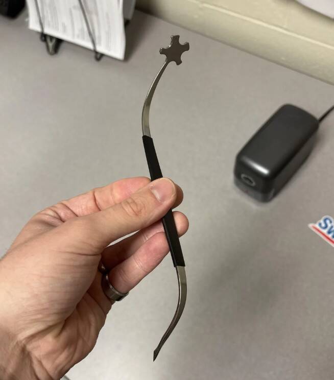 10. Эта странная штука была в шкафу в больничном отделении, но никто не знает, что это. Легкая, деревянная, загнутые концы металлические. Есть идеи?