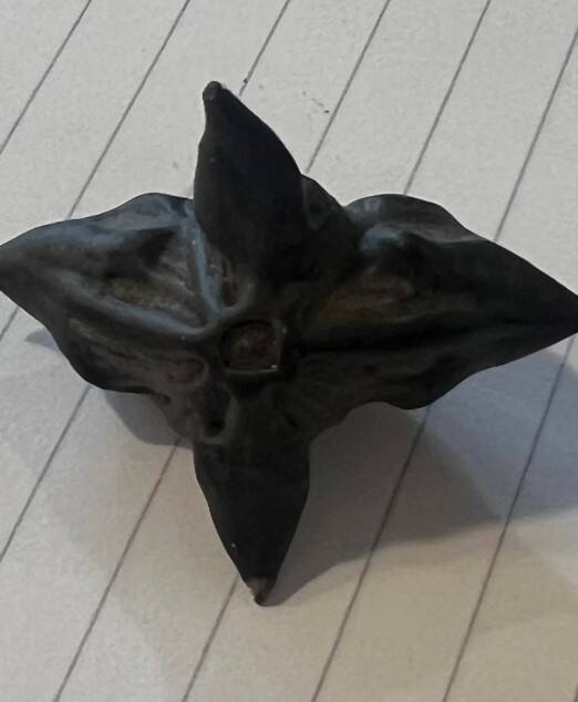 Это семенная коробочка китайского водяного ореха (очень инвазивное водное растение)
