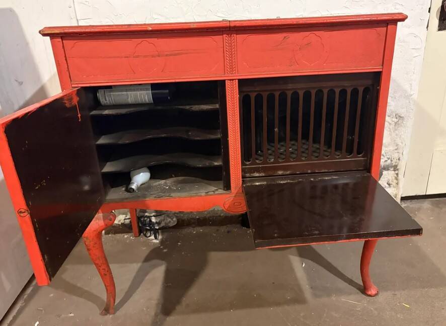 1. Нашли в подвале старого дома этот комод со странными отделениями. Правая верхняя часть открывается и там словно чего-то не хватает. Есть идеи, для чего это?