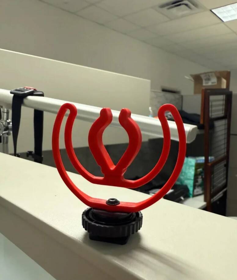 Это держатель для микрофона с креплением на камеру оператора. Гибкий пластик работает как амортизация вибраций при движении