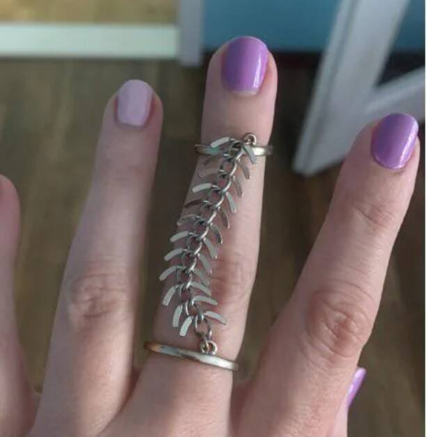 Это такое кольцо на палец: большее кольцо надевают первым, а меньшее "садится" на верхнюю фалангу