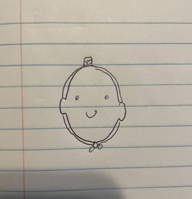 14. Сегодня я был на прогулке и увидел женщину в крошечной шляпке размером с наперсток, привязанной к голове. «Шляпа» находилась на самом верху головы, а две веревки завязывались под подбородком. Я не хотел фотографировать ее, поэтому нарисовал картинку... Я никогда раньше не видел ничего подобного, мне любопытно, что это такое!