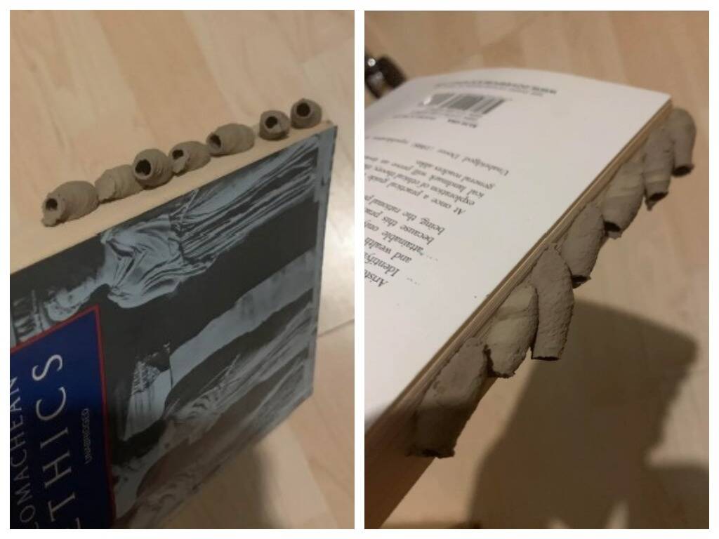 13. Что это я обнаружил на книге со стороны, которой она стояла к стене?