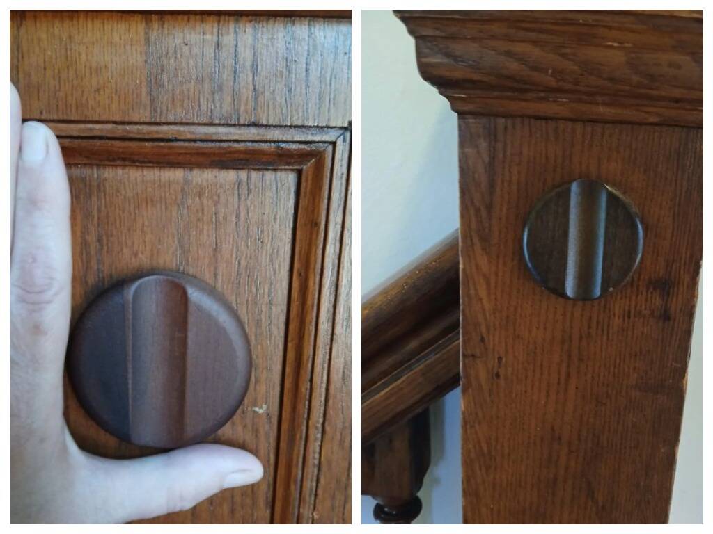 9. Только что переехал в дом, построенный в 1916 году, и нашел 5 таких дисков с пазом. 1 на раме двери шкафа и 4 на лестничных перилах. Есть какие-нибудь идеи, для чего это?