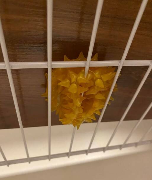 4. Что это мы нашли в шкафу дома, который мы только что купили? Диаметр несколько сантиметров, выглядит мягким, но на самом деле очень твердое и острое. Кажется, прилипло как к проволочной полке, так и к деревянной панели над ней.