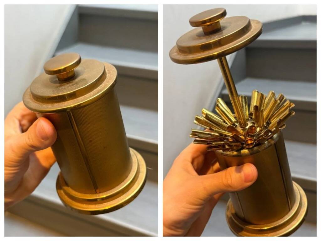 11. Делал ремонт ванной комнаты в своем доме, пробил гипсокартонную стену и обнаружил рукописную карту с отметкой «X». Она привела меня на чердак, и в определенном месте под утеплителем я нашел маленький сундук с сокровищами. Одной из самых интересных вещей в нем было это. Что это?