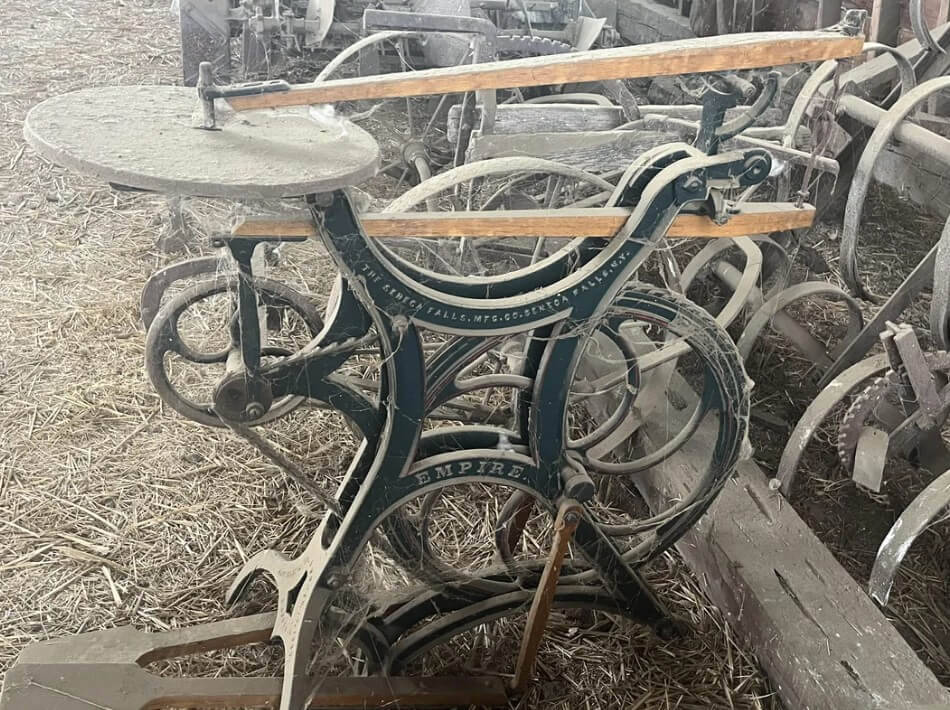 3. Нашли это на старой ферме, есть дата - 1860-е. Кто-нибудь знает, что это может быть? Есть две деревянные педали, которые, по-видимому, используются для перемещения рычага вверх и вниз.