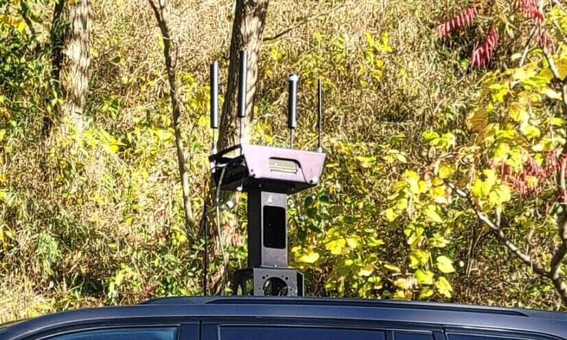 1. Что это за электронное устройство установлено на крыше автомобиля? Имеет 4 антенны и подключено к источнику питания автомобиля. Два таких были припаркованы на вершинах холмов на расстоянии около 500 м друг от друга, с прямой видимостью.