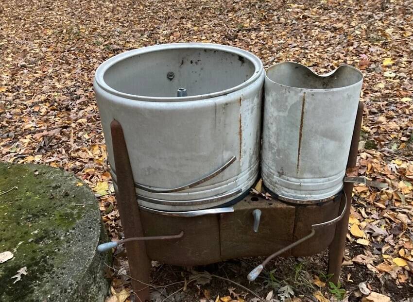 6. Наткнулись на это в лесу не так далеко от частных домов. Это явно какой-то винтаж, но чем это было раньше?