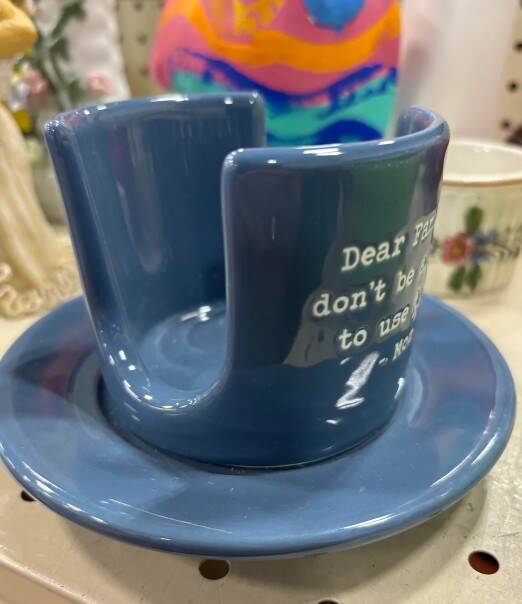 1. Интересно, для чего это керамическое изделие размером с чашку? Блюдце прикреплено