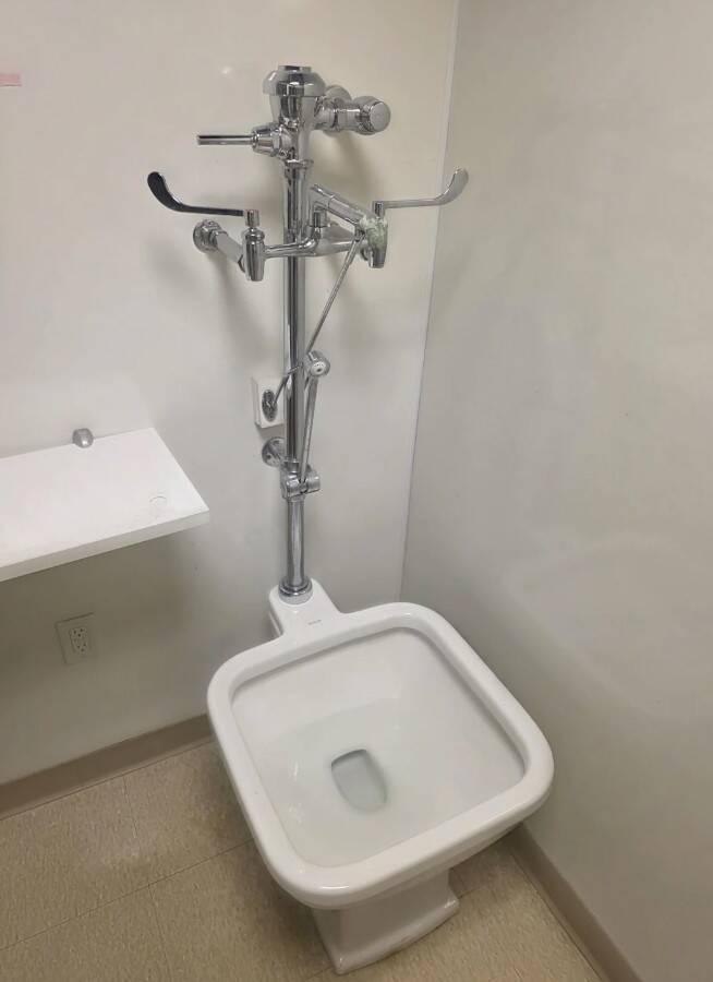 11. Никогда не видел такого унитаза. Почему он такой странный? Делаем ремонт в здании, и тут везде такие