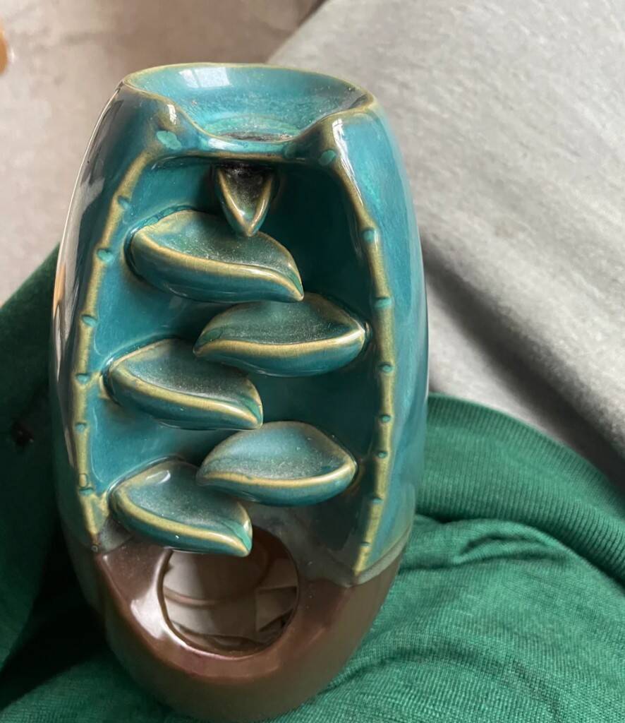 Это для сжигания благовоний, только не в виде палочек, а конусов, дым от которых, как ни странно, стекает вниз по этим листьям