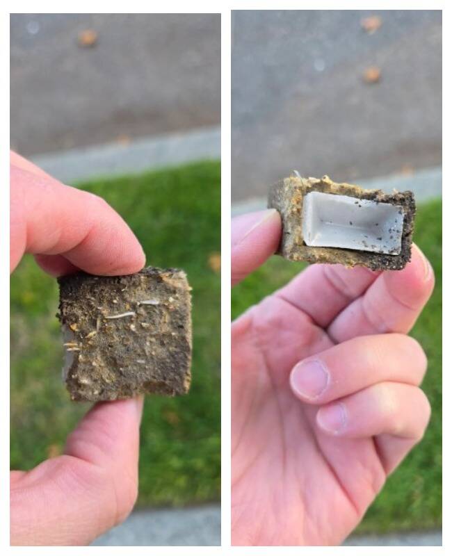 1. Что за штуковины я нашел в окрестностях? Снаружи они похожи на спрессованную землю, но пахнут рыбой. Внутри пластиковые, и я видел некоторые из них с пластиковой бумагой с надписями внутри