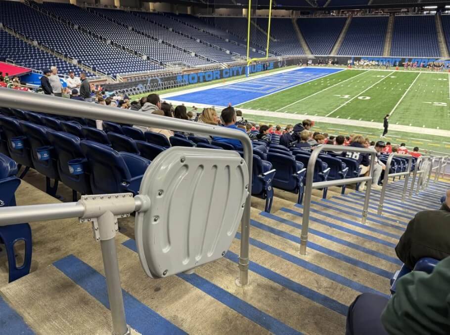 6. Такие серые пластиковые штуки есть на каждом третьем поручне на этом стадионе. Что это может быть?