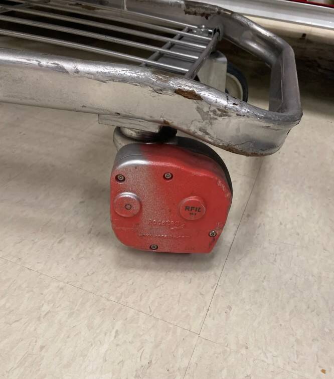 Это устройство отслеживания, которое сообщает, если тележку вывозят за пределы определенной территории