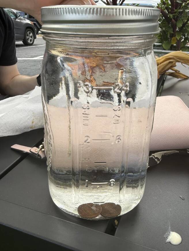 3. На столиках в ресторане стоят такие банки с водой и монетками внутри. Кто-то знает, что это значит?
