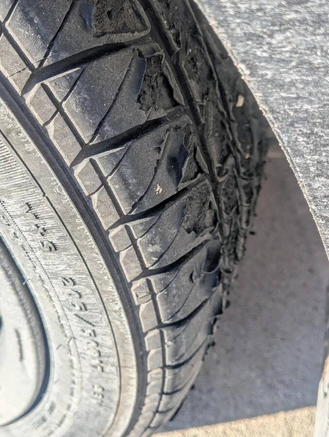 12. Этой шине всего полгода, что с ней случилось? Вчера она была в порядке, сегодня выпал первый снег и дорога была очень скользкой.