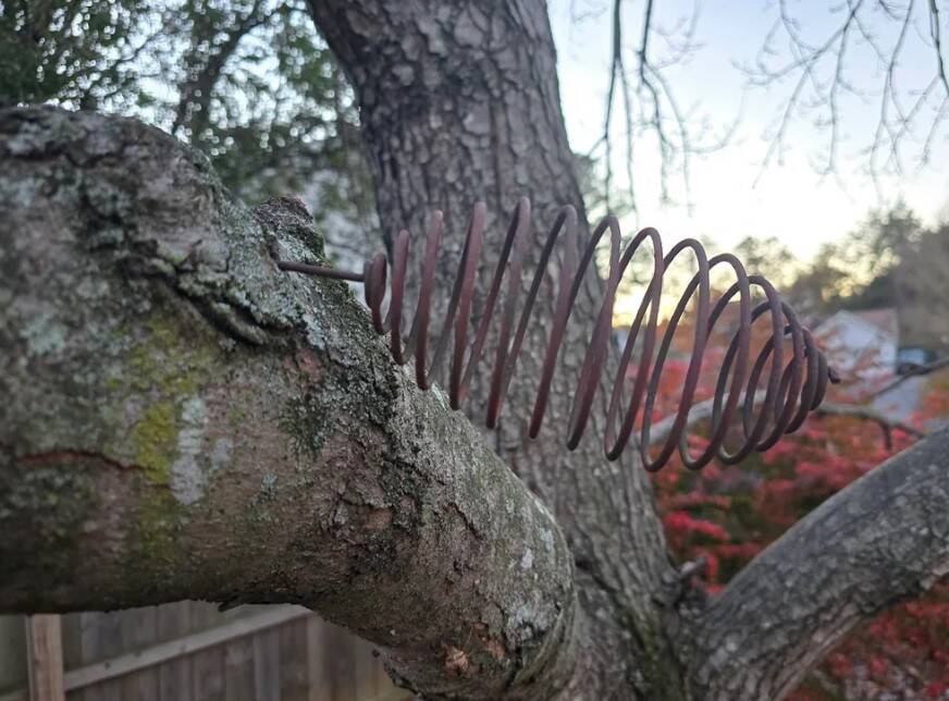 10. Интересно, что это за металлическая пружина на дереве? Она немного растягивается, но не сильно