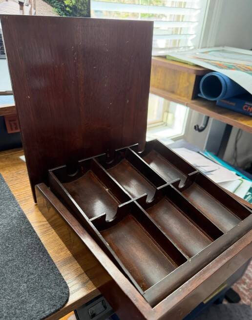 7. Нашли это среди старых вещей: деревянная коробка, когда крышка открывается, середина чуть приподнимается, а в каждом отделении выемка. Для чего это?