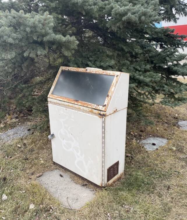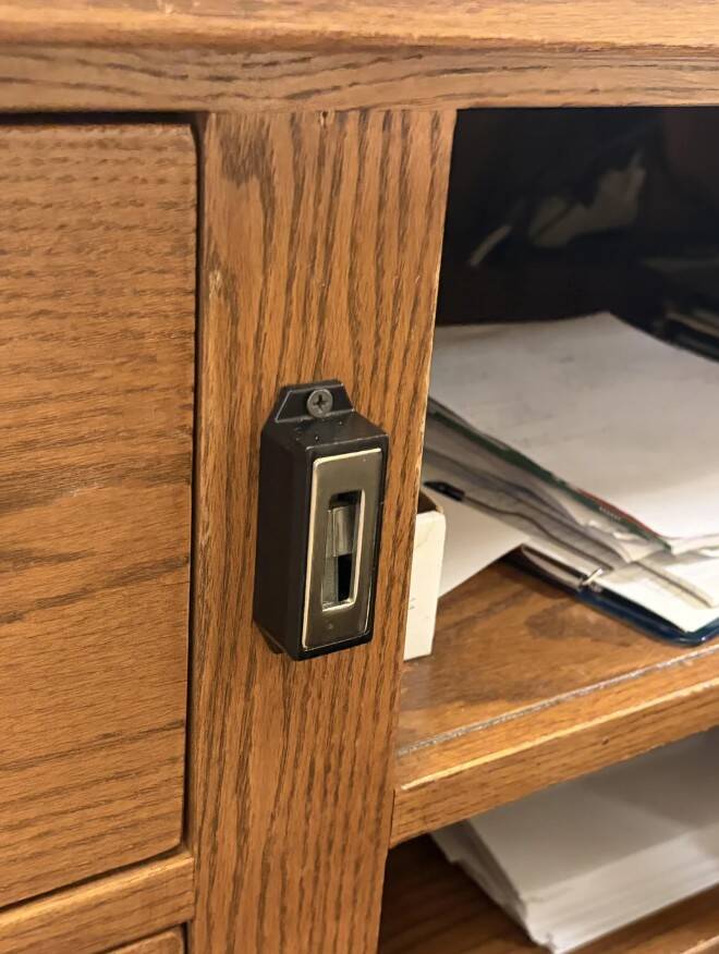 9. Что это за большой металлический корпус с черной наклонной панелью, замком и вентиляционным отверстием?