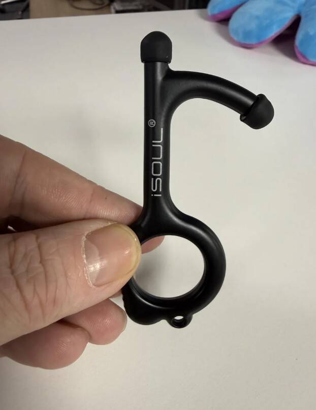 Это мульти-крюк, который используют, чтобы не нажимать пальцами кнопки и не открывать руками ручки, а делать это этой штукой