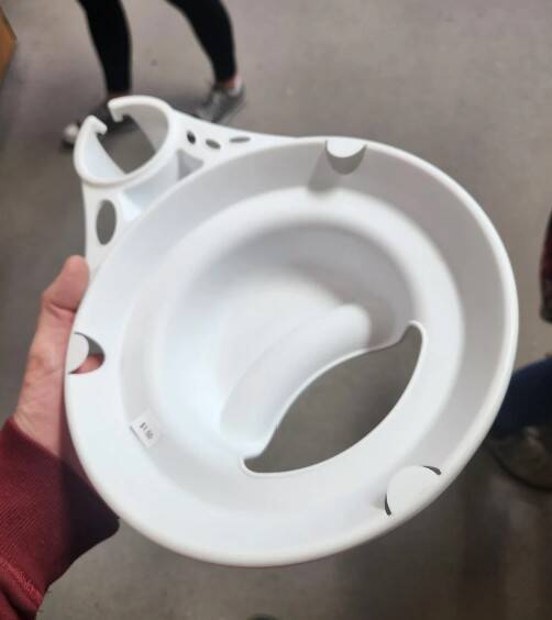 1. Увидели эту пластиковую штуку в кухонном отделе магазина секонд-хенд. На изогнутой канавке рядом с большим отверстием написано «Поместите здесь большой палец», но не могу понять, для чего. Есть идеи?