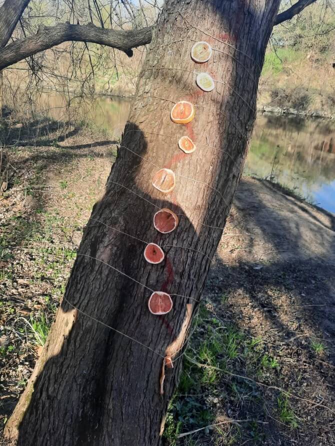 10. Были в лесу и увидели на одном дереве привязанные половинки грейпфрута. Что бы это значило?