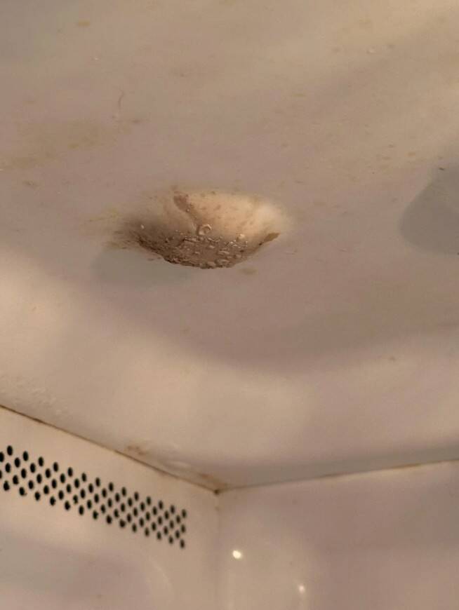 14. Полез мыть микроволновку и заметил на "потолке" такую бульбашку. Кто-то знает, от чего это может быть?