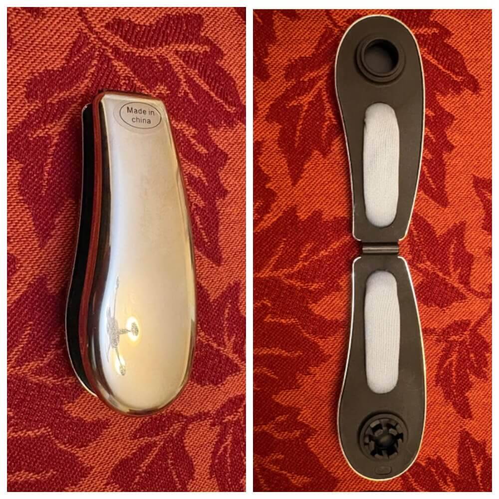 15. Нашел эту штуку в старой кладовке. Снаружи тонкий серебристый металлический корпус, внутри — черный пластик и тканевые подушки. Открывается и закрывается с щелчком. Есть идеи, что это?