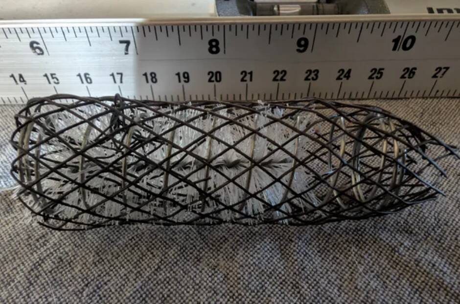 4. Белая пластиковая щетка внутри металлической спирали, небольшого размера, было в ванной. У меня дети-подростки и кошка, которая может принести все что угодно с улицы, поэтому даже не знаю, что это может быть.