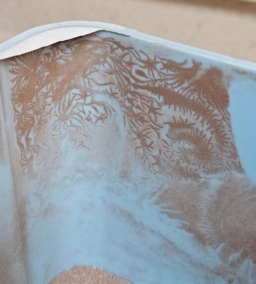 3. Сегодня открыла банку с горячим какао, и на одной стороне внутреннего контейнера были такие следы. Порошок хранился в почти пустом шкафу, где прохладно, сухо и темно. Это же не какая-то бактерия, правда?