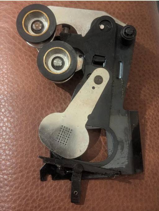 Похоже, это часть механизма проектора. Колеса помогают направлять ленту, а серебристая часть — это заслонка, которую можно повернуть перед источником света, чтобы тепло не повредило ленту, когда она останавливается.