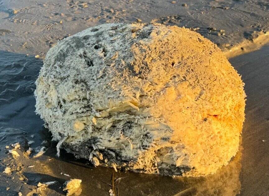 10. Загадочная находка на пляже: белая бугристая масса размером с целый чемодан + при нагревании становится маслянистой. Что это такое?