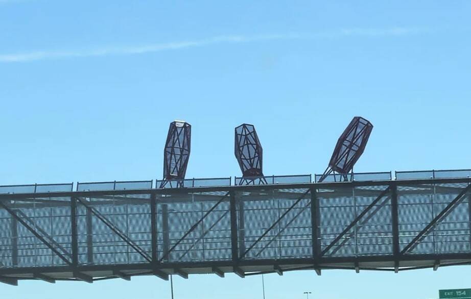 10. Кто-то знает, что это за штуки, похожие на клетки на металлической конструкции над шоссе (возможно это пешеходный мост)? Увидели в Аризоне