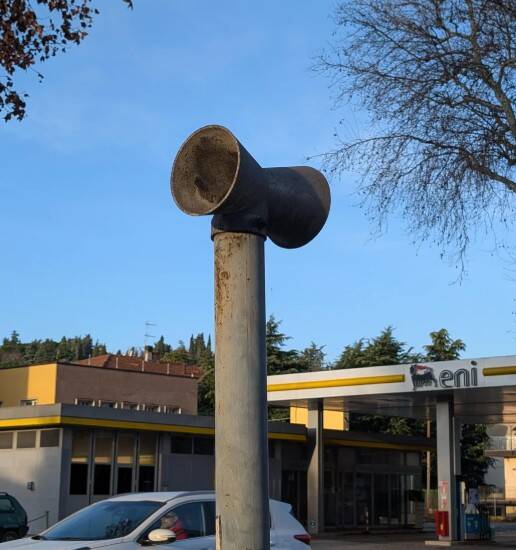 5. Ржавая металлическая Т-образная труба на вертикальном столбе с открытыми горизонтальными выходами. Что это может быть?