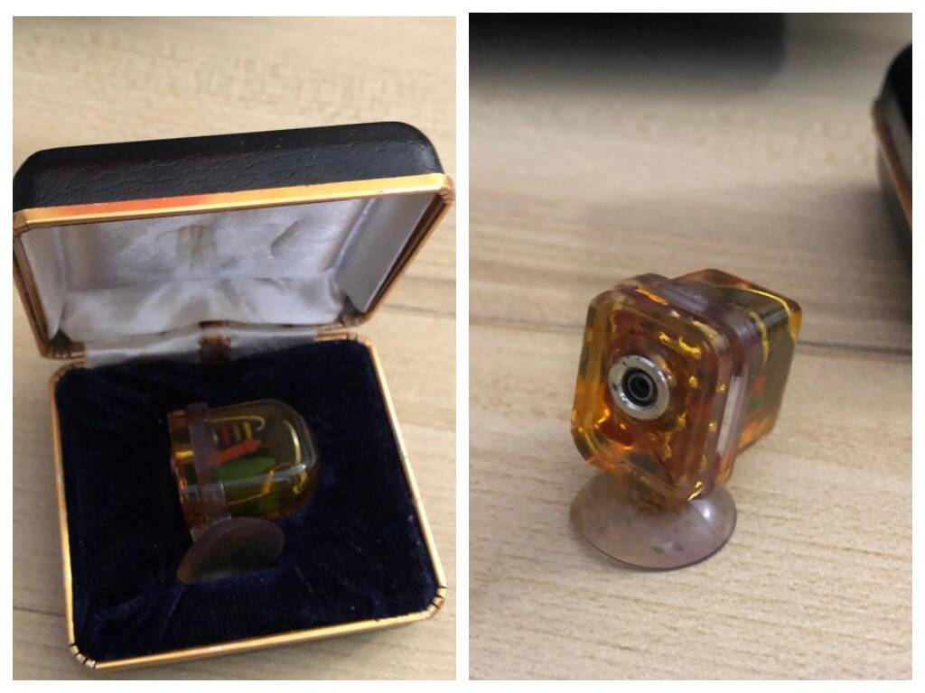 6. Нашли этот небольшой электронный гаджет на блошином рынке. Размером не более 3 см, в прозрачной смоле, в комплекте с мягким чехлом. Что это такое?