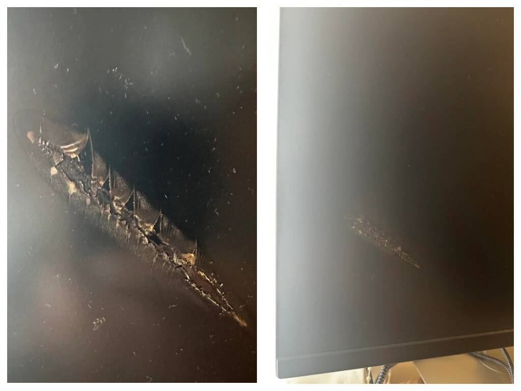 12. Заметил вот такое повреждение на мониторе, но не могу понять, откуда оно могло взяться. Есть предположения?