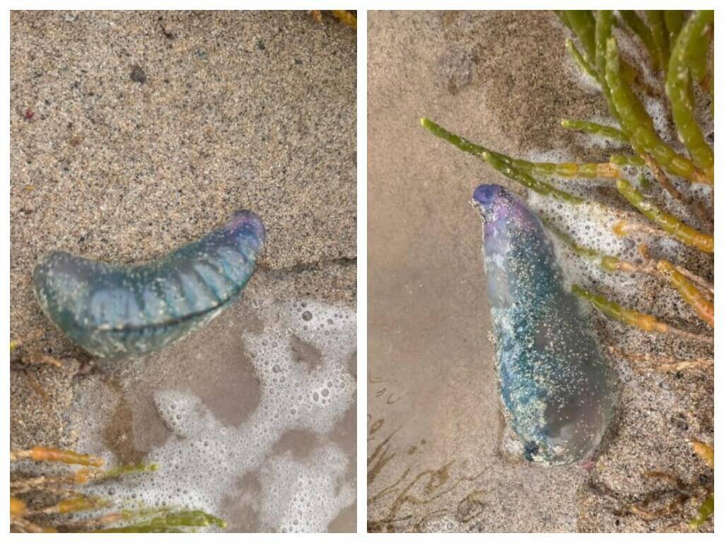Это португальский кораблик - организм, состоящий из разных полипов, может жалить, поэтому осторожно