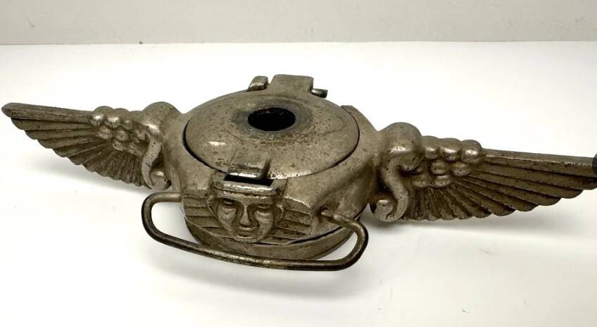 1. Что это за металлическая деталь с крышкой и ручкой? Она прикручивается к чему-то. Нашла в коробке у одного из родственников вместе с кнопкой клаксона от «Понтиака» 1950-х годов.