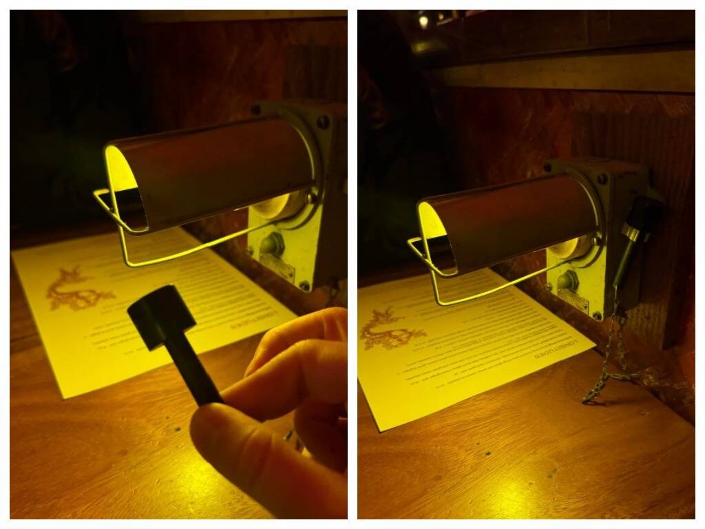 15. Что это за пластиковый молоток длиной 5 см, прикрепленный к металлическому светильнику с помощью небольшой цепочки?