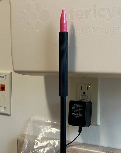 Это рефлекторный молоточек. Острый конец можно использовать для сенсорных тестов с целью определения болевых реакций