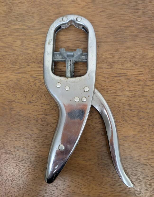 9. Штука с ручкой, которую нужно сжимать. При каждом нажатии тусклая серебристая деталь посередине поднимается вверх. Что это?