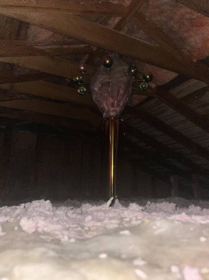 12. На чердаке старого дома полно утеплителя, а посредине висит какая-то штука, похожая на утеплитель, обмотанный проводами, с рождественскими игрушками (?) и мишурой… Очень странно. Есть идеи, что это такое?