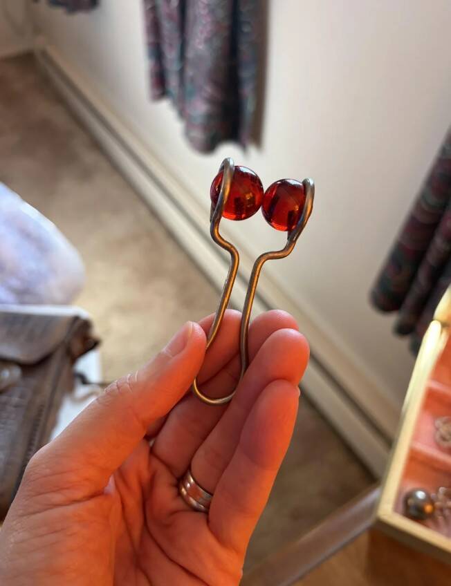 6. Эта штука лежала вместе с ювелирными украшениями. Металлическая ручка со стеклянными шариками - что это?