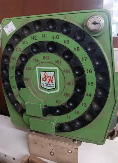 Это старый прибор из магазина, который выдавал "зеленые марки" - люди вклеивали их в специальные карточки, по которым потом получали скидку. Колесо работало по принципу старого дискового телефона.