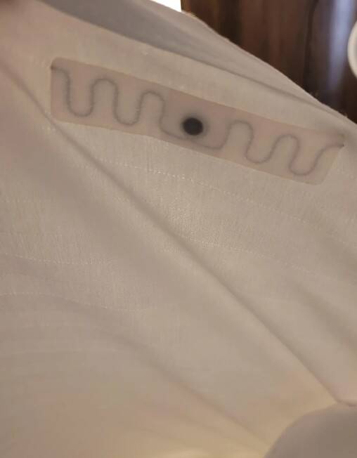 RFID-метка для белья. Используются для отслеживания того, какое белье находится в каких номерах, когда и как часто его стирают, а также для предотвращения краж.