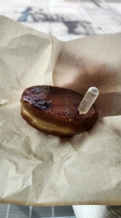 10. Открыл запакованный пончик крем-брюле, купленный в аэропорту, а там вот это. И как это понимать?