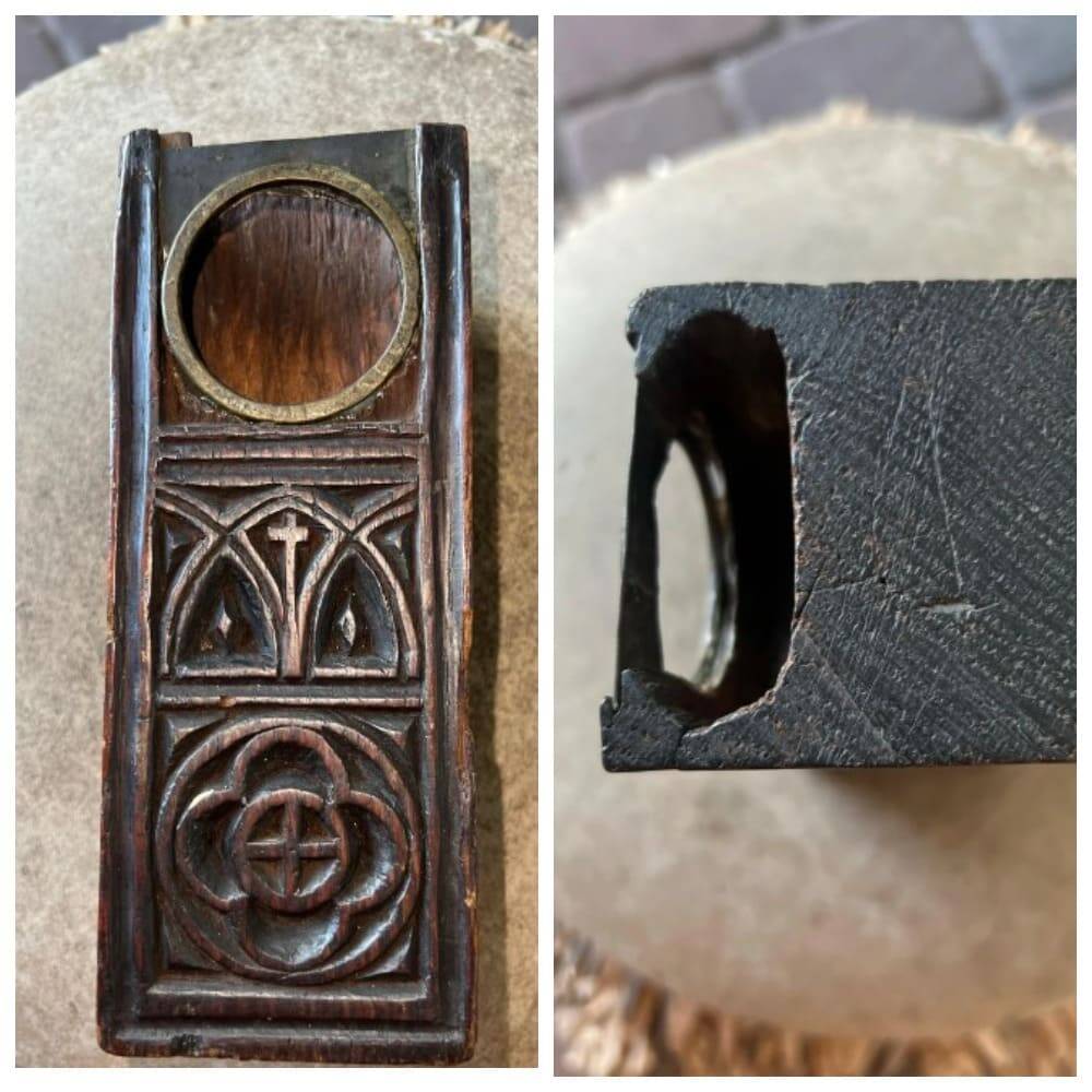 6. Небольшая деревянная штуковина из антикварного магазина, есть небольшая щель. Кто-то знает, чем это было раньше?