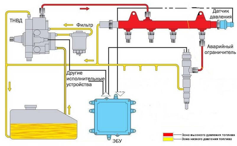 Название Common Rail дословно переводится как «общая рейка», что точно отражает суть конструкции: все форсунки получают топливо из одного источника, находящегося под стабильным высоким давлением.